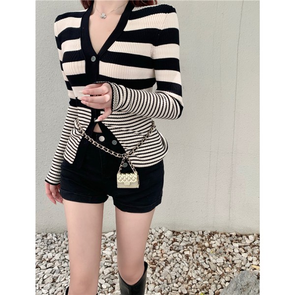 스트라이프 브이넥 가을 겨울 스웨터 > TOP