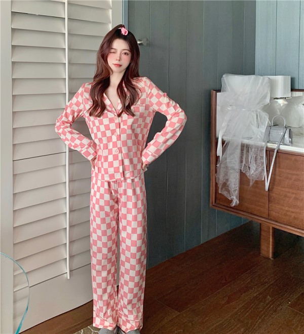 • 핑크 체크 잠옷 투피스 세트